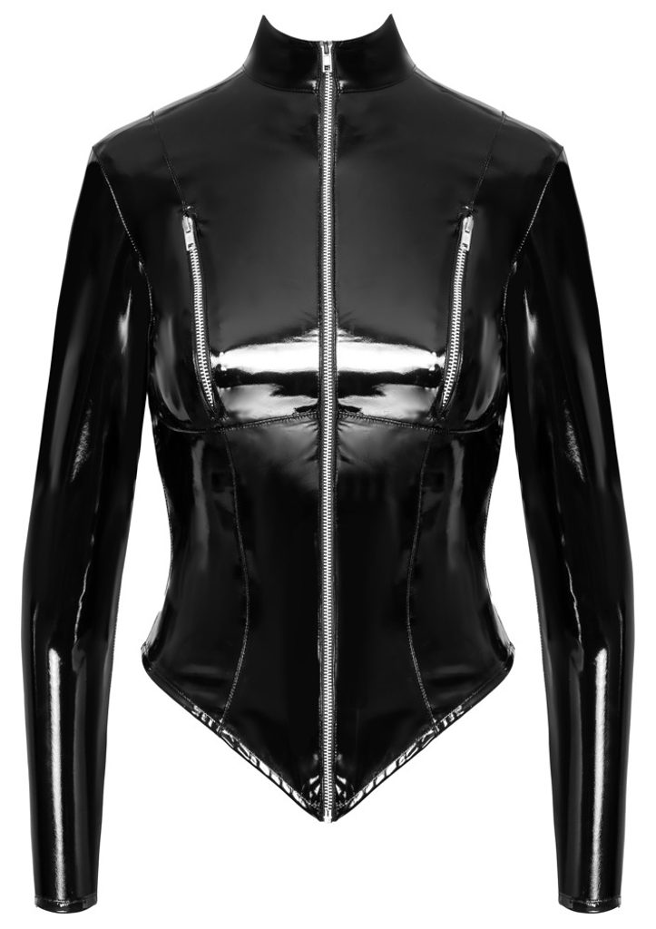 Bunda má přiléhavý střih, který dokonale zvýrazní vaše křivky. Celopropínací kovový zip vpředu umožňuje snadné oblékání, zatímco dva samostatné zipy přes prsa dodávají modelu smyslný detail – kdykoli si můžete dopřát rafinované odhalení.