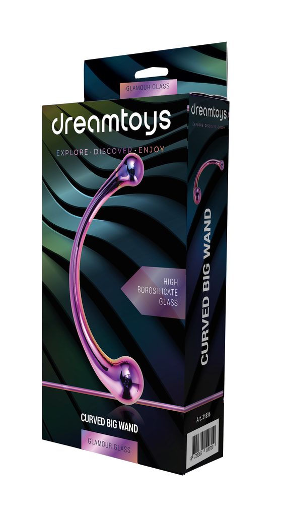 Skleněné dildo Dreamtoys Glamour Glass Curved Big Wand nabízí větší rozměr, výraznější tvar a ještě intenzivnější možnosti stimulace. Je vyrobeno z kvalitního borosilikátového skla, které je pevné, neporézní, hygienické a bezpečné pro tělo. Hladký povrch zajišťuje příjemný skluz a snadnou údržbu.