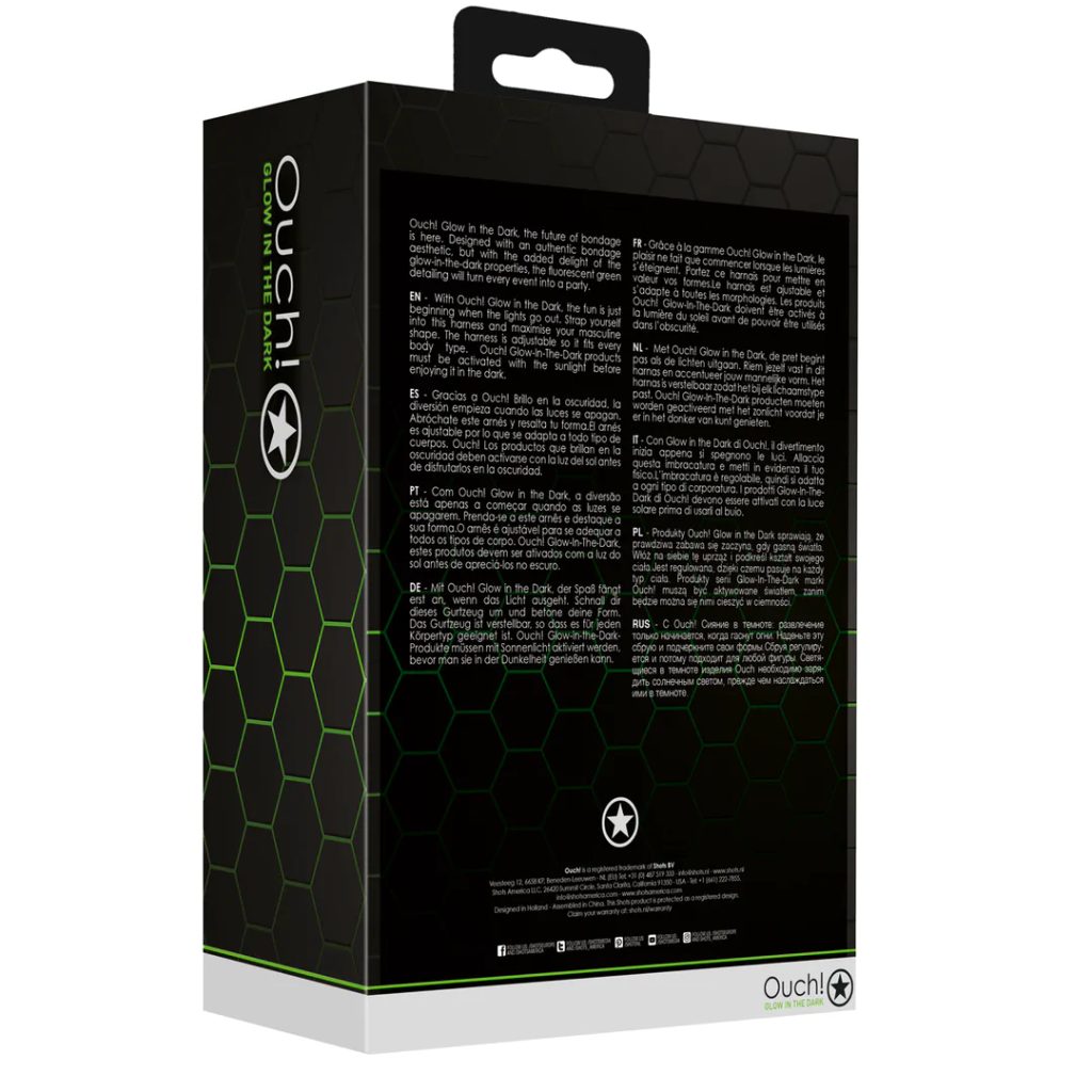 Objevte nový rozměr smyslné dominance s postrojem Ouch! Glow in the Dark. Tento model kombinuje klasický bondage styl s nečekaným prvkem – fluorescenční zelené detaily, které ve tmě doslova září a promění každý okamžik v nezapomenutelný zážitek.