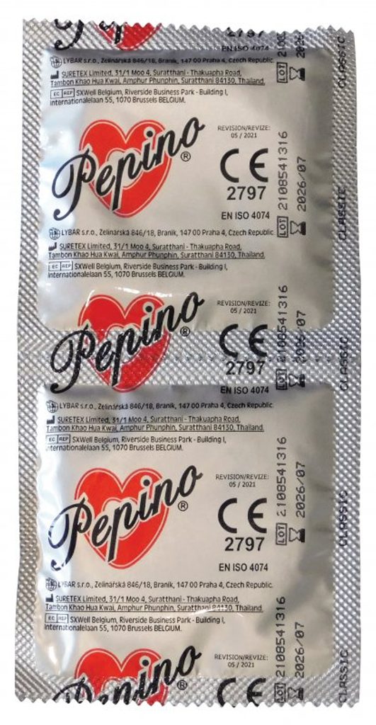 PEPINO CLASSIC MULTIBALENI 144 ks - PEPINO anatomicky tvarované kondomy z přírodního latexu s rezervoárem, natural colour, hladký povrch, nominální šířka 53 mm. Vlhčeno silikonovým olejem. S jemnou vanilkovou vůní. 100% elektronicky testováno. Správné používání kondomů může pomoci snížit riziko otěhotnění, přenosu HIV / AIDS nebo jiných sexuálně přenosných infekcí. Kondomy Pepino jsou zdravotnické prostředky. Před použitím si pozorně přečtěte návod k použití uvnitř balení.