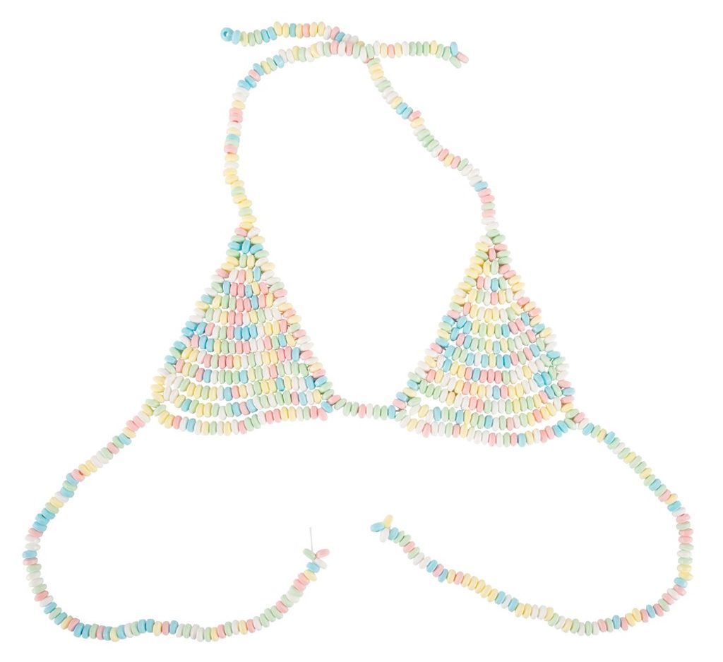 Sladká šňůrka z jedlých cukrových perel s elastickými gumičkami. Jednoduše příjemné k jídlu!