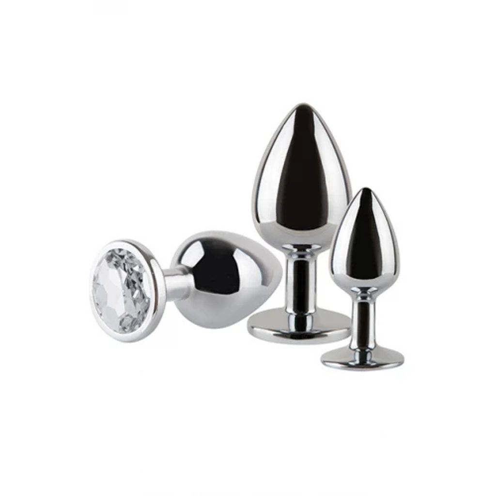 Balení 3 lesklých stříbrných kovových análních kolíků, od značky S Pleasures, speciálně navržených pro anální stimulaci.