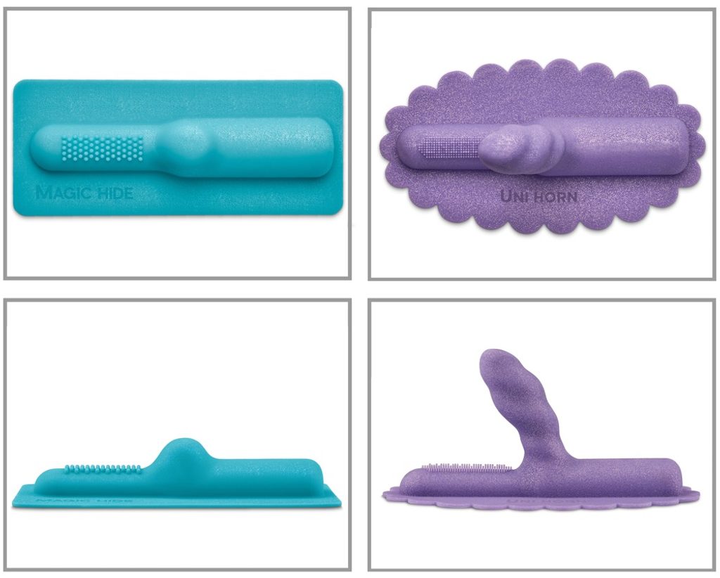 Pro různé požitky je Cowgirl Unicorn Sex Machine dodáván se dvěma vyměnitelnými stimulačními nástavcemi: první, vyroben ze silikonu, má texturu, ideální pro stimulaci třením vulvy a klitorisu. Druhý, texturovaný silikonový nástavec, má 8,7 cm vkládací dildo pro vaginální, G-bod a stimulaci klitorisu.