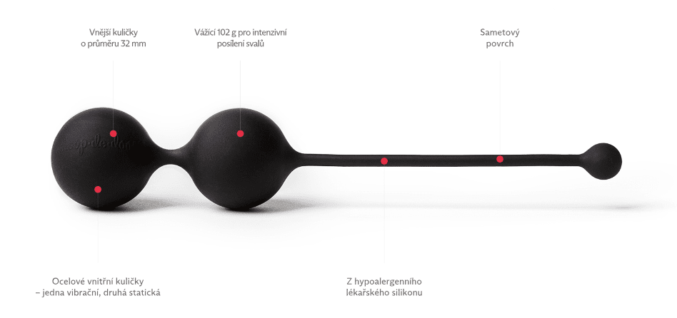 Kuličky aktivují svaly pánevního dna již při nepatrném pohybu. Vnitřní kuličky mají silikonovou výstelku, proto jsou zcela tiché a diskrétní.