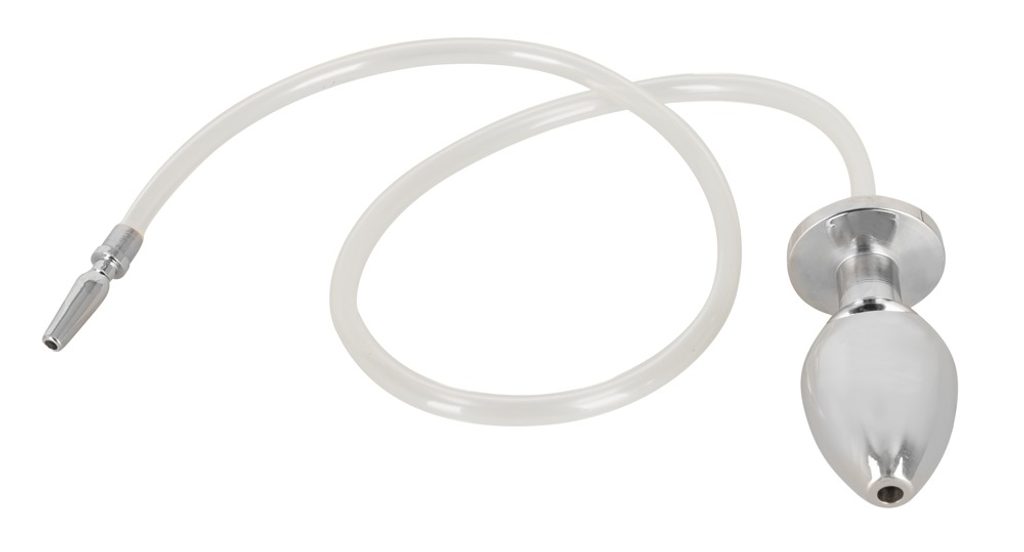 Anální kolík s hadičkou připojenou k penisovému kolíku