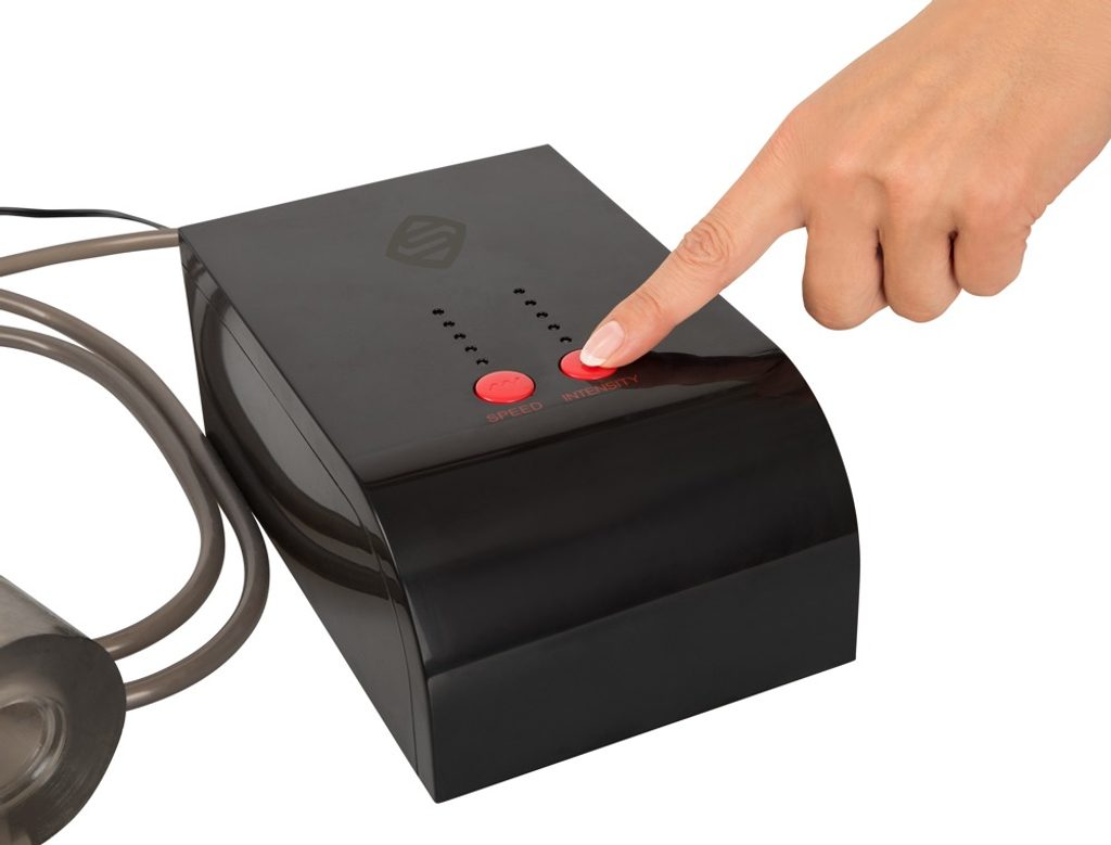 Mocný elektromotor SUCK-O-MAT je chráněný ve stylovém černém kufříku. Povrch má vzhled lakovaného piana. Díky cestovním rozměrům si můžeš užívat blowjob každý den i v autě. Samozřejmostí je omyvatelný návlek a také filtr zabraňující průniku tekutin do motoru.